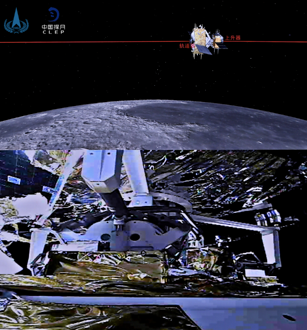 轨道器与上升器完成交会对接。(国家航天局供图)