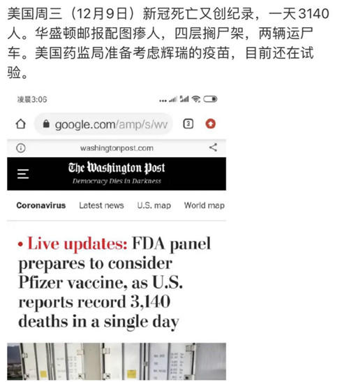 同样是活跃在网上的大V,真正移民到美国的一位前高校教授的现实版“美国梦”,却根本不是营销号所描述的样子。到了美国之后他才发现,自己原来鼓吹的“自由民主”,实际上是为那些有钱的白人所准备的。如今他的微博上已经不见了“美国梦”,而是不断吐槽在国外的生活不易和对自己选择的自嘲。疫情期间,他每天在微博记录美国的惨状, “运尸车”“裹尸袋”等词毫不避讳。
