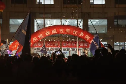 迎“嫦五”回家,贺英雄凯旋。12月17日凌晨1时59分着陆在内蒙古四子王旗预定区域的嫦娥五号返回器,怀着迫不及待的心情,经过一天奔波,于17日晚上回到了它的“诞生地”——中国航天科技集团五院。为欢迎嫦娥五号任务试验队凯旋和返回器回家,航天城玉琮广场举行了隆重欢迎活动。五院院长张洪太、党委书记赵小津等领导,院综合管理部门及京区各单位共500余人参加了活动。