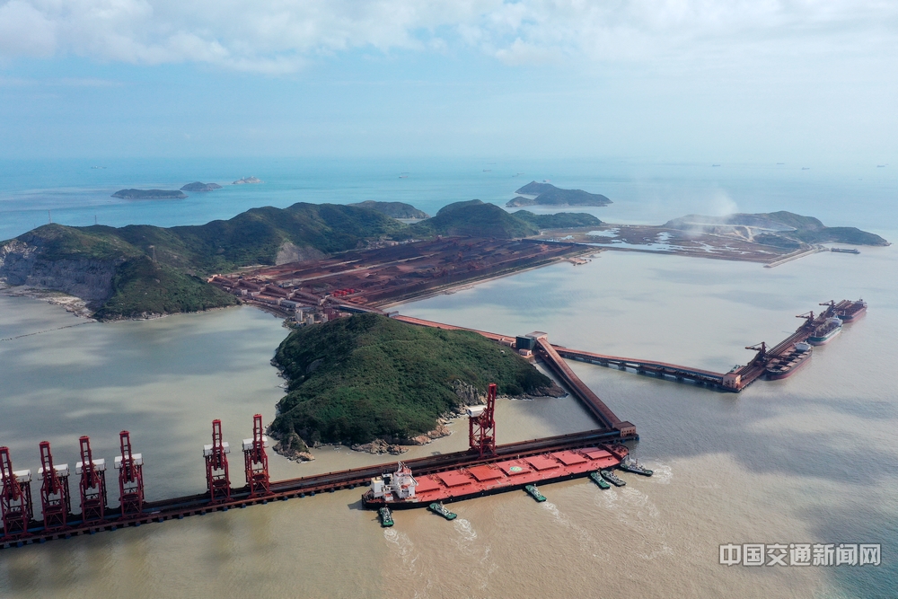 宁波舟山港衢山港区鼠浪湖卸船码头巨轮到港常态化。