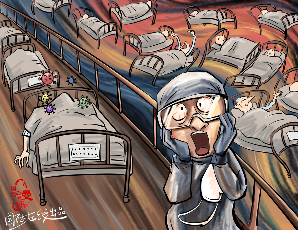 新冠疫情失控,美国医疗系统超负荷运转,医护人员几近崩溃。在一些医院的重症监护室里,每位护士要同时照顾5位患者。