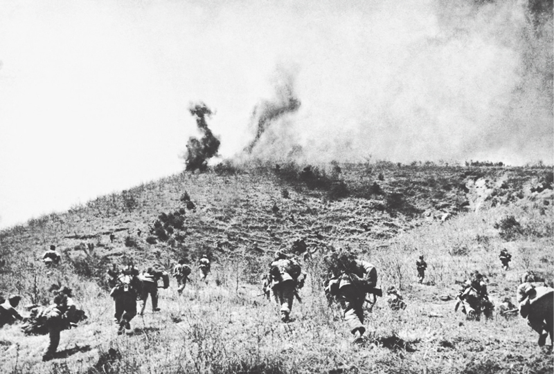 1950年10月至1951年6月,中朝军队连续进行了五次战役,把侵略军从鸭绿江和图们江边赶回到三八线附近。图为中国人民志愿军某部渡过汉江后围歼残敌。 新华社发