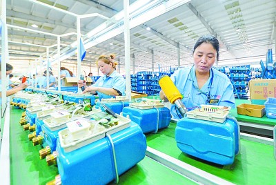 工人在河北邯郸冀南新区一家燃气装备制造企业生产车间内工作。新华社发