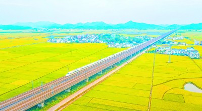 深秋时节,广西南宁市宾阳县古辣镇大面积稻田迎来收获季。刘峥摄/光明图片