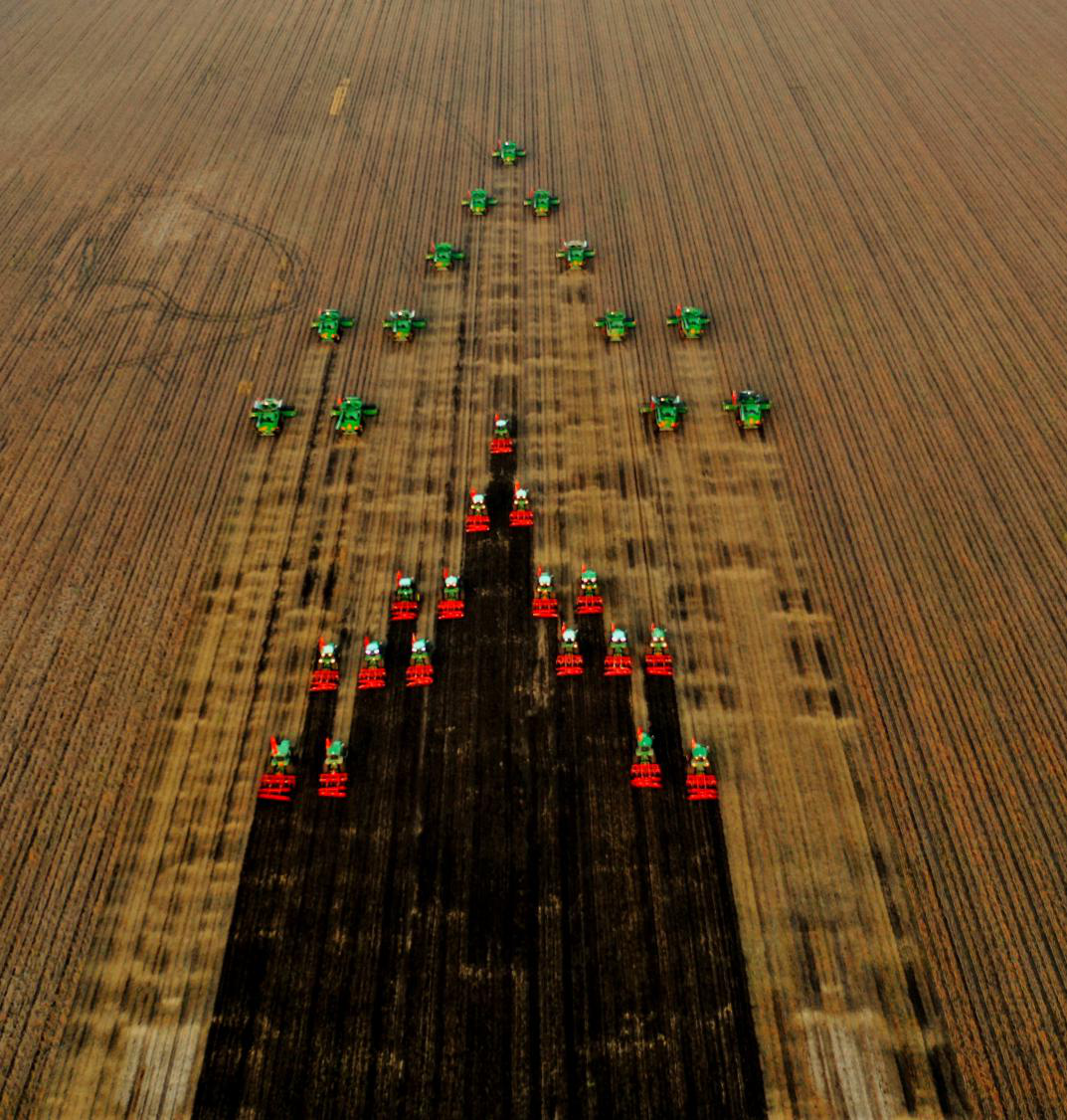秋收时节,黑龙江省黑河市北大荒集团的尖山农场、鹤山农场全面开镰,喜获丰收。图为2020年9月30日,大型农机设备在列队收割。 视觉中国 供图