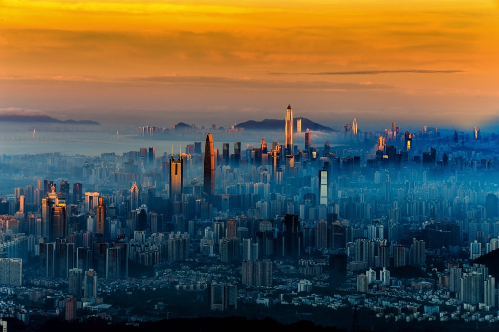 40年春风化雨,40年春华秋实。深圳实现了由一座落后的边陲小镇到具有全球影响力的国际化大都市的历史性跨越。图为从梧桐山由东往西拍摄的深圳全景。深圳市委供图 谭伟明/摄