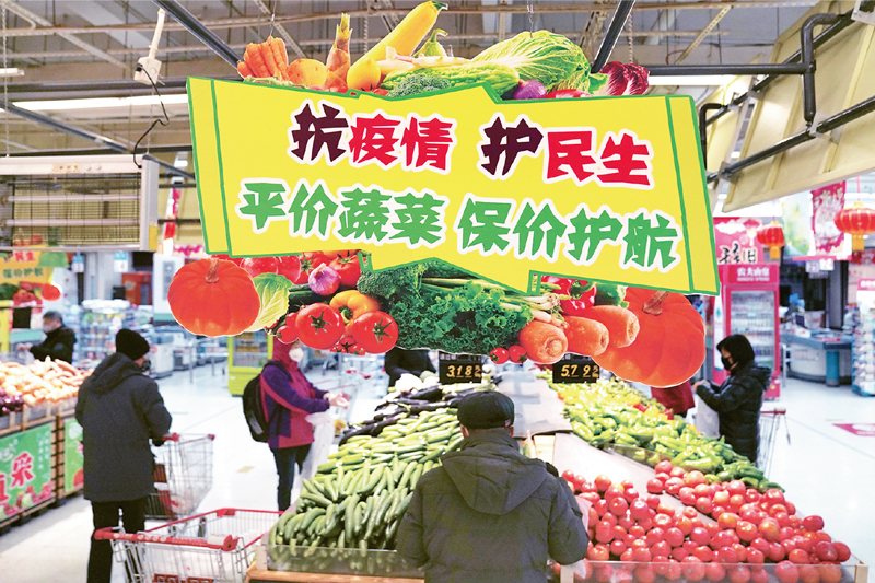 新冠肺炎疫情发生后,全国各地努力做好保障和改善民生工作。图为2020年2月4日,黑龙江省哈尔滨市市民在一家大型超市内挑选蔬菜。新华社记者 王建威/摄