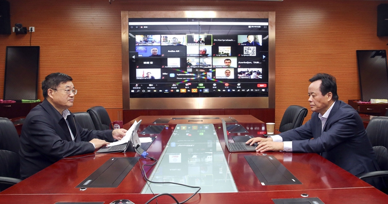 2020年5月9日,中国中西医结合专家组同上合组织国家医院新冠肺炎视频诊断会议举行。会议邀请中方专家介绍中医药在抗击新冠肺炎疫情中的独特作用和临床经验,并与来自14个上海合作组织成员国、观察员国和对话伙伴国的80多位医生共同分析临床病例,探讨新冠肺炎中西医结合防治方案。 新华社记者 殷刚 摄