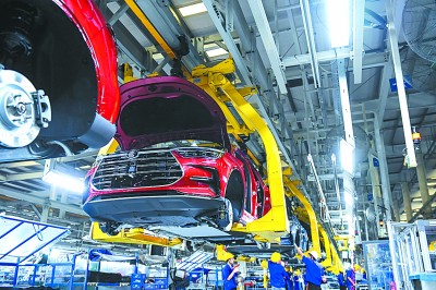 深圳比亚迪总部的新能源汽车生产线。新华社发