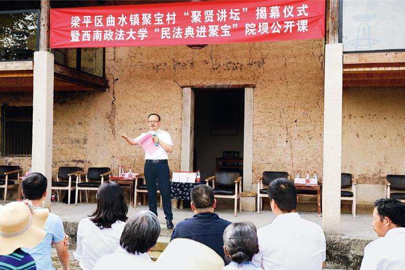 2020年6月10日下午,重庆市梁平区曲水镇聚宝村谭家院子,西南政法大学“民法典百人宣讲团”成员用通俗易懂的语言和丰富的实例,向市民讲解民法典,引导市民学法、懂法、守法,让民法典的精神深入到老百姓的日常生活。 人民图片 刘辉/摄