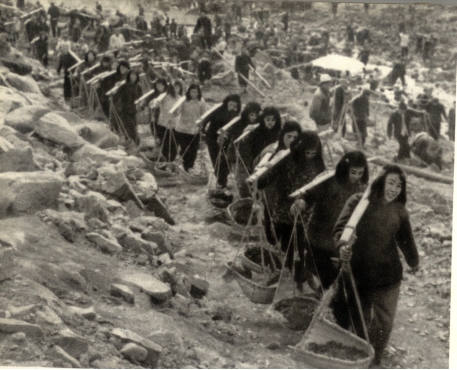 1958年为解决汉江严重洪水灾害,实现毛泽东同志提出的“南水北调”伟大构想,10万建设大军来到丹江口,拉开了丹江口水利枢纽建设的序幕。图为1959年建设大军依靠人力完成丹江口大坝建设截流工程。中新社发 陈谷子/摄