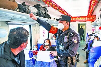 12月9日,新疆库尔勒铁路公安处乘警在进行安全检查。新华社发