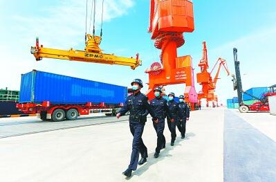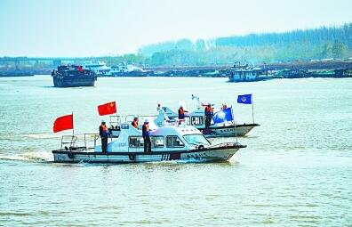 4月2日,浙江省舟山市岱山县鱼山警务站组织警力深入鱼山岛企业工地巡逻护航。邹训永摄/光明图片