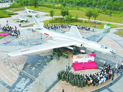 高校学子在江西省南昌市军事主题公园,了解国防和军队建设发展成就。新华社发