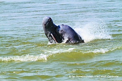 世界自然基金会和柬埔寨渔业管理局今年10月发布的普查报告称,濒危物种伊洛瓦底江豚种群数量在过去4年中保持稳定。图为伊洛瓦底江豚在柬埔寨桔井省内的湄公河段嬉戏。新华社发