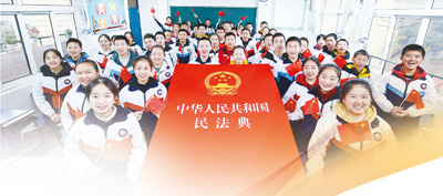 安徽铜陵市第十二中学的学生庆祝民法典出台。