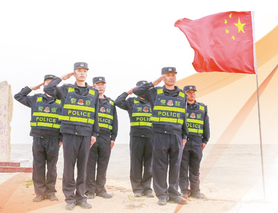 黑龙江出入境边防检查总站鸡西边防管理支队民警在边境执勤并向国旗敬礼。