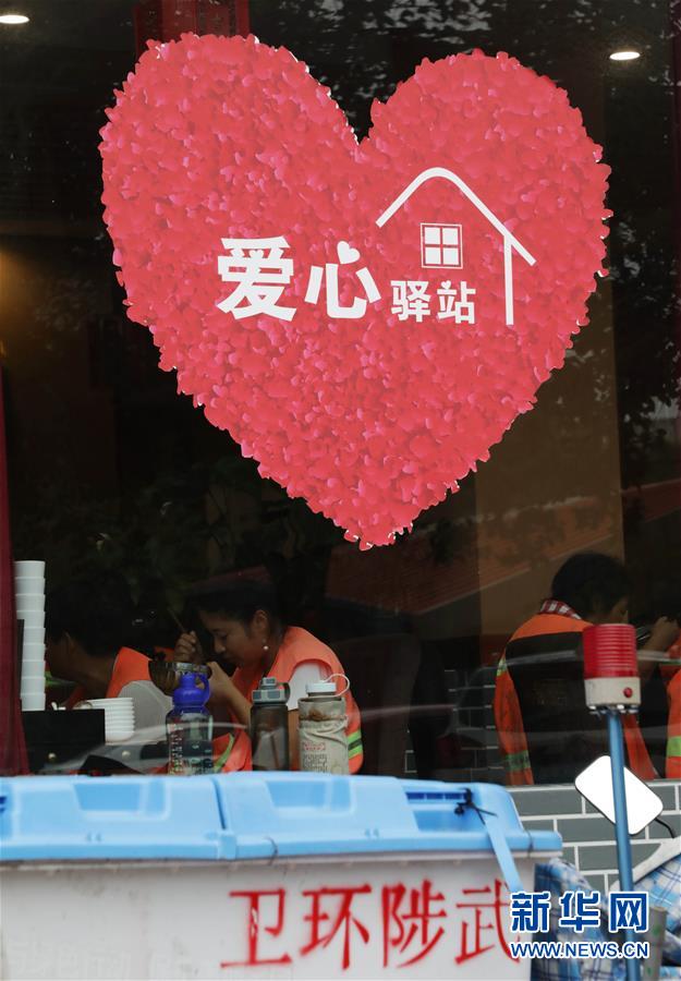 8月5日,环卫工人在面馆就餐。 在河南省焦作市武陟县,有一家面馆,连续三年为当地环卫工人提供午餐“爱心面”。 今年37岁的王海燕是这家面馆的负责人。2017年,她和县城环卫部门联系对接,商定把面馆当作环卫工人喝水、歇脚的“爱心驿站”,并于每周三免费为环卫工人提供“爱心面”午餐,关爱环卫工人。 新华社发(冯小敏 摄)