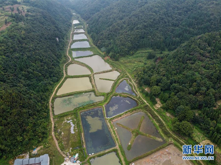 9月24日在贵州省毕节市七星关区清水铺镇后山社区拍摄的大闸蟹养殖基地(无人机照片)。新华社发(罗大富 摄)