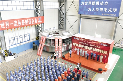 世界首台长短叶片白鹤滩百万精品转轮顺利通过验收。