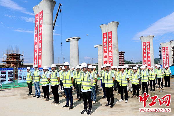 6月4日上午9点整,80多人整装列队,在常益长铁路黄桥大道80#墩施工现场举行了一场以“消除事故隐患,筑牢安全防线”为主题的活动,标志着中铁十一局二公司2020年安全生产月活动正式拉开序幕。