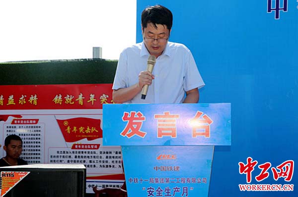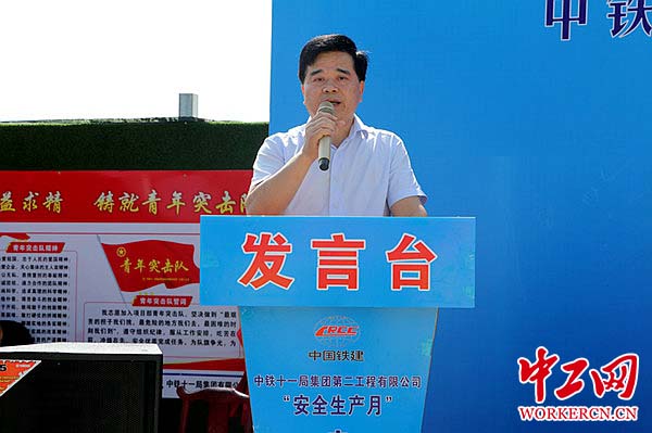 仪式上,长沙市应急管理局副局长杨文广在讲话中指出,要认清形势,增强安全生产工作的责任感和使命感,抓实安全风险防范各项工作,全面做好安全生产工作。要针对安全生产事故主要特点和突出问题,层层压实责任,狠抓整改落实,从根本上消除事故隐患,有效遏制重特大事故发生。中铁十一局二公司作为央企单位,要充分认识此次活动的重大意义,强化安全生产责任和措施,强化安全生产意识,最大限度地消除安全隐患,防止事故发生,展现央企责任担当。