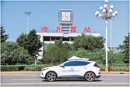 自动驾驶出租车Robotaxi行驶在沧州城区街道上。 百度供图