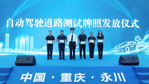 自动驾驶道路测试牌照发放仪式。陈仕川 摄