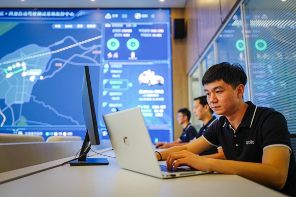 西部自动驾驶开放测试与示范运营基地启动。陈仕川 摄