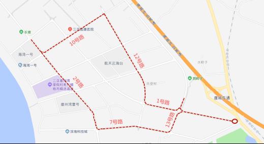 1号路——12号路——10号路——2号路——7号路——13号路——1号路(闭环路线),全长约8公里。