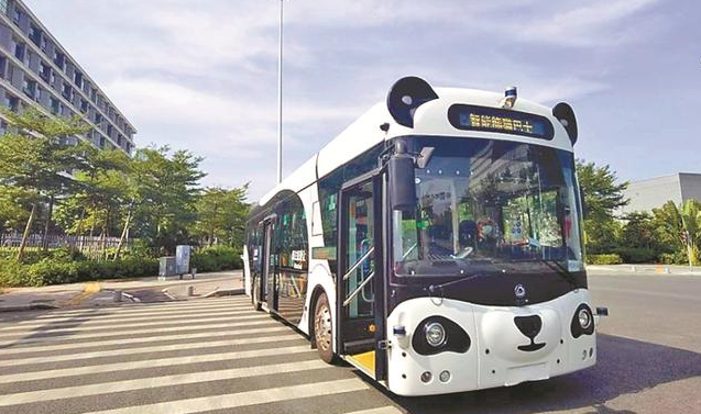 坪山首辆智能网联无人驾驶巴士——“熊猫公交”也正式上路,市民在发车点扫码小程序即可免费预约搭乘。