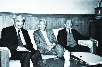 一九九九年,朱德群与吴冠中、熊秉明在北京