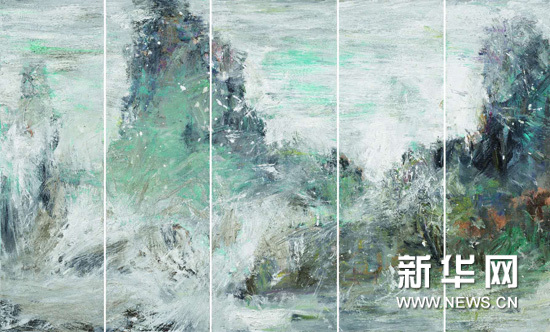 徐里的很多抽象语言寓意深刻,作品里的情感和意趣融合适度,构思独特立意鲜明而内容切合时代,多数抽象语言都表现在技巧上的新颖。他始终保持立意与抽象架构相融的探索,将抽象语言表现出对自然的另类发现,最终体现抽象艺术具备生命价值的体验,他的作品呈现出了对抽象绘画的思考和演变。事实上徐里抽象语言的创作过程,是面对艺术本体进入创新语境的突破,他从生活中截取了某种意念,给物象增添出意识上的夸张与想象,企图表达出对自然朦胧的溢美追求。客观上创造了新鲜活力的效果,这些特点无疑是他绘画语言的特征,所以徐里绘画的抽象语言是全新的艺术符号,以色彩的主调附加出迷幻的靓丽特点,抽象出特别的视觉冲击力和艺术效果。这些抽象的语言特征充满了作者奇妙诡异的想象,即使如此,谈徐里抽象语言却无法回避中国画的本质。