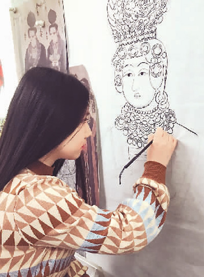 陈梦楚临摹敦煌壁画。陈梦楚供图