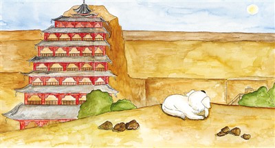 陈梦楚绘本中的乐乐和莫高窟九层楼。陈梦楚供图