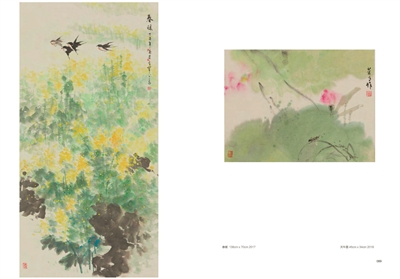 花朵清丽优雅,或含苞初绽,或昂首怒放,彩蝶在空中翩翩起舞;池塘清澈见底,岸上的花草树木倒映其中,几尾小鱼仿若穿梭于花树之间……很难想象,这些颇有现代气息的作品,竟出自一位84岁高龄画家——竺庆有之手。