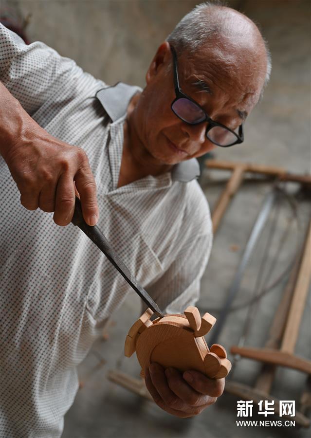 8月12日,李石水在家中调试木制玩具——“自走”小鸟。新华社记者 宋为伟 摄