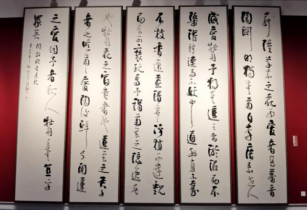 据了解,此次展览的全部作品,都是张海2016年《追梦之旅》个展后新创作的作品,共计80多件。作品涵盖了行草书、隶书、楷书、篆书等。本次展览也是张海一次阶段性探索的总结,与之前展览作品有着较为明显的区别,特别是行草书创作,演化出小字行草书、破锋行草书、铁线行草书、草书、常态化行草书五种不同风貌,让人耳目一新。