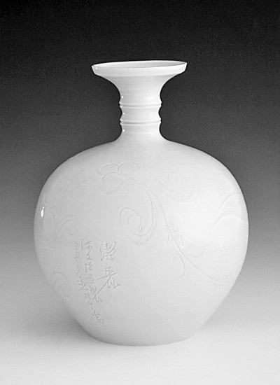定窑刻花“清风峻节”瓶(陈文增作,2009年中国美术馆收藏)。资料图片