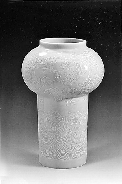定窑“四海呈祥”云龙雕花瓶(陈文增作,1999年人民大会堂收藏)。资料图片