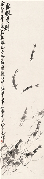鱼虾负剑 齐白石 134.5cm×33cm 北京画院藏