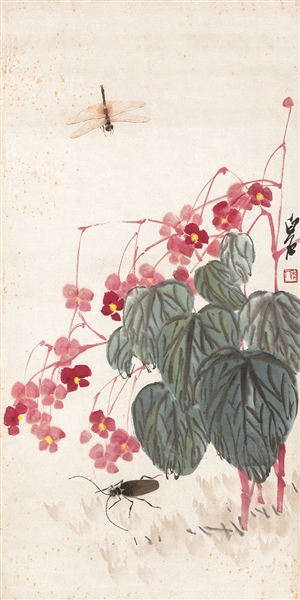 草虫秋海棠 齐白石 68cm×33.5cm 北京画院藏