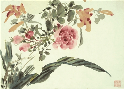 浙江省博物馆收藏的黄宾虹近千件花鸟作品,大多作于寓居北平之时。“70岁以后,黄宾虹山水画从风格到笔墨技法已趋成熟,他的花鸟画根基在山水。”骆坚群认为,同其山水一样,他的花鸟也从明人的法度出发上溯元人,即以明人沈周、陈白阳成熟的写意花鸟为基本框架,因为明人在“物物有一种生意”即生趣活泼上,在笔墨勾染的手段方法上,比元人更放得开,比清人淳厚,去古不远,又不同于近人赵之谦、吴昌硕辈的排恣纵,黄宾虹选择生趣活泼,即潘天寿所谓的“自自在在”,这确实是黄宾虹的独到之处。已过古稀之年的黄宾虹,笔墨修养、胸襟气质,恂恂然,霭霭然,信手拈来的,自然是“自自在在”且韵属雅正。