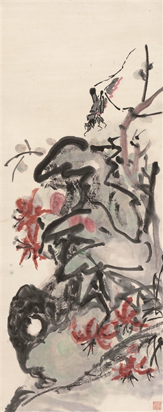 萱花虫石 黄宾虹 97cm×38cm 浙江省博物馆藏