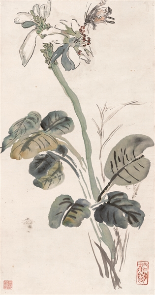 设色花蝶 黄宾虹 64.9cm×33.6cm 浙江省博物馆藏