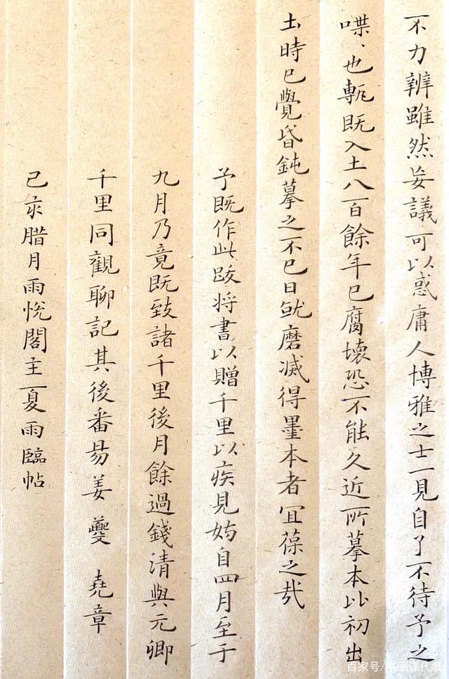 从夏雨晒的图片来看,其书法形式多样,临帖众多。从褚遂良的《大字阴符经》、欧阳询《九成宫》,到赵孟《道德经》、姜夔的跋王献之《保母帖》、甚至还有《灵飞经》,大楷、中楷、小楷皆精!