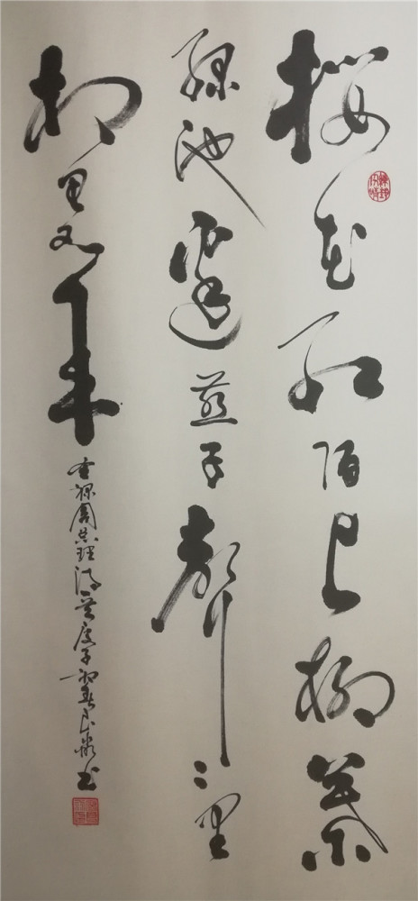 书法创作的成长之路与知识涵养、人生阅历的成长是顺承一路的,每一个时期的创作其实就是自己的心路历程和对书法的领悟过程。从最初的临帖到现在自成一格,行书师于米芾和颜真卿,草书则是从孙过庭《书谱》和王羲之《十七帖》入手,尤其喜欢怀素、张旭、王铎、苏东坡等,他们的书法作品对我后面的书法创作有很大的影响。