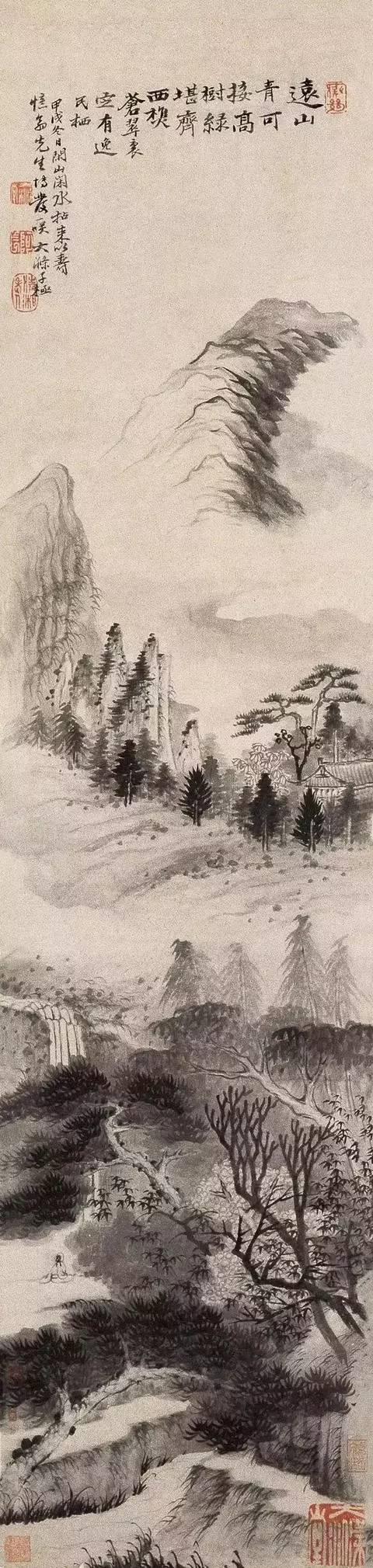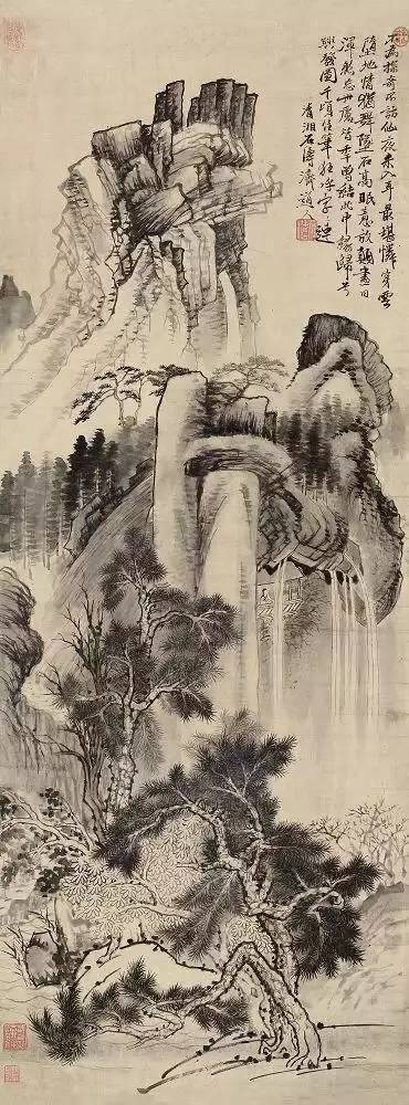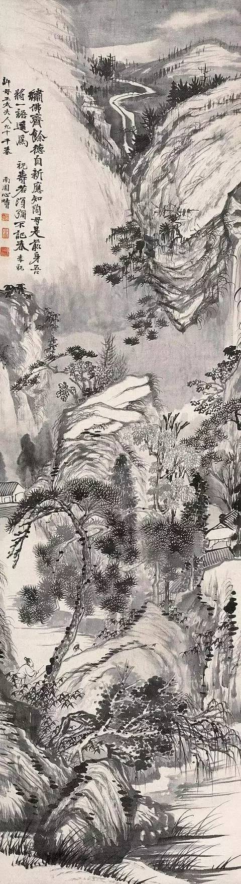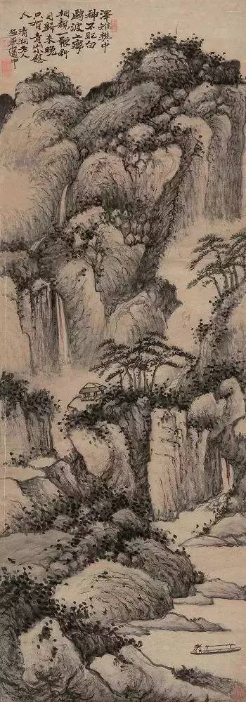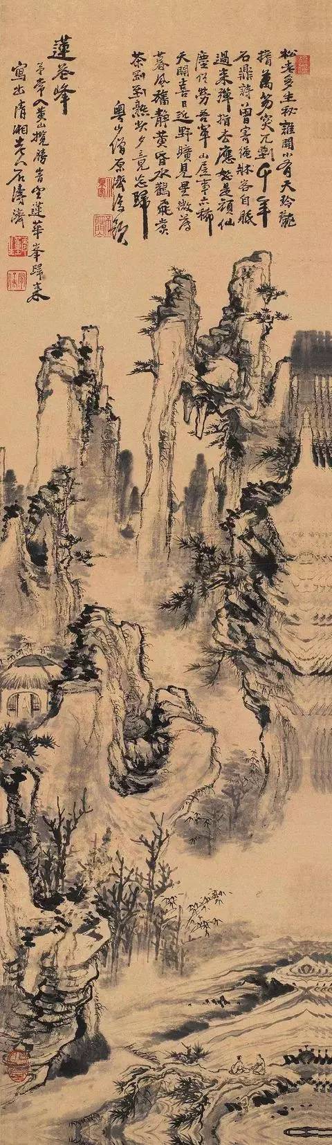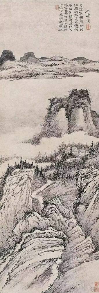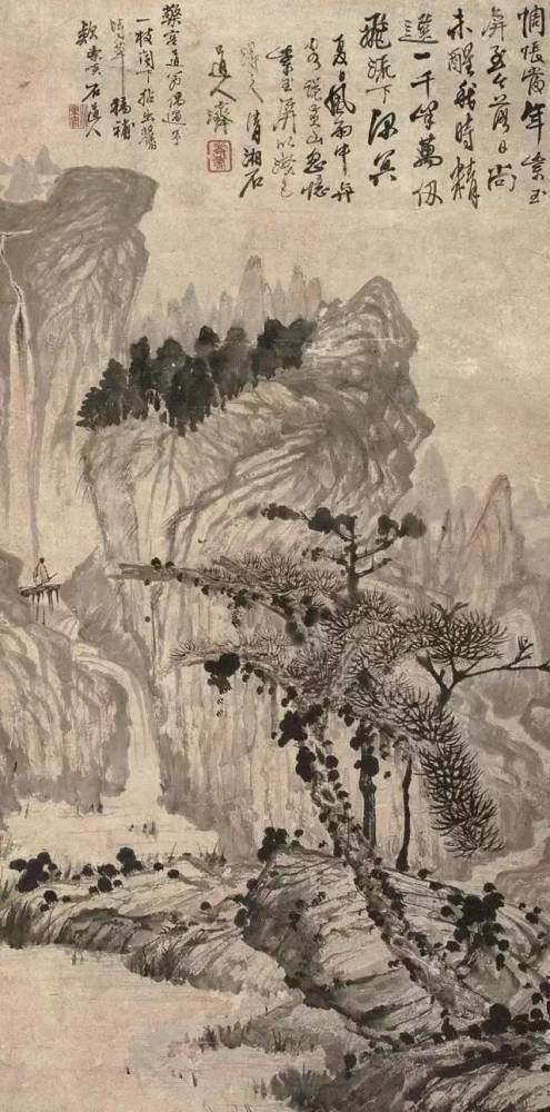 石涛擅长山水,常体察自然景物,主张“笔墨当随时代”,画山水者应“脱胎于山川”,“搜尽奇峰打草稿”,进而“法自我立”。所画的山水、兰竹、花果、人物,讲求新格,构图善于变化,笔墨笔墨恣肆,意境苍莽新奇,一反当时仿古之风。综观石涛一生绘画作品中,无论是寻丈巨制,还是尺页小品,都具有十分鲜明的个性和时代气息,观之令人难以忘怀。在技巧上他运笔灵活。或细笔勾勒,很少皴擦;或粗线勾斫,皴点并用。有时运笔酣畅流利,有时又多方拙之笔,方圆结合,秀拙相生。
