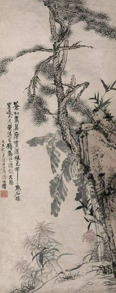 康熙19年庚申(1680年)石涛移居南京,他的绘画艺术渐臻成熟,生活、思想也开始发生变化。这时期,石涛在文人荟萃的南京地区如鱼得水,与当地许多诗人画士结识,其中著名的有屈大均,孔尚任、龚贤、戴本孝、查士标、程邃、黄云等,还认识了卓子任、郑瑚山、博问亭等官吏名流,他们对石涛艺术境界的升华大有作用。特别是当时活动在金陵地区的石溪、龚贤、戴本孝、程邃等都是声名卓著的画家,对来自宣城的石涛很有刺激作用。更为重要的是,在这批社会名流里有不少是收藏古画的鉴赏家,他们保存有前代不少名人的墨宝,使石涛有机会观摩前人的作品,进一步了解董源、倪瓒、沈周以及董其昌等人的作品,从中吸收丰富的绘画技艺,而他所处钟陵、太湖的自然景色,也促使他体会到这些名家的笔墨成就。
