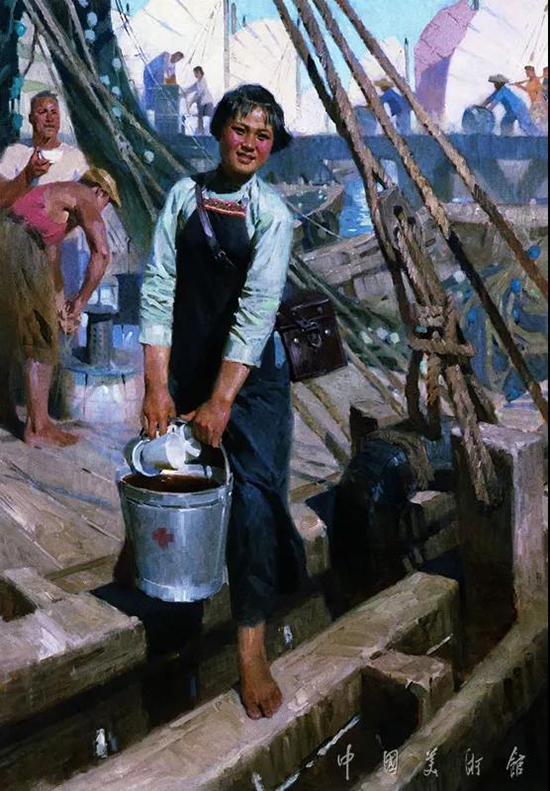 陈衍宁 渔港新医 1973年 138cm×98.3cm 油画 布面 中国美术馆藏